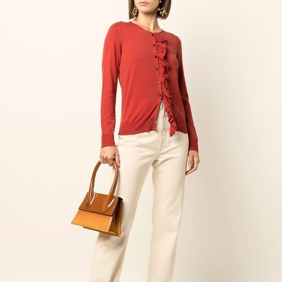 Louis Vuitton ruffled rust button down cardigan
