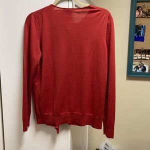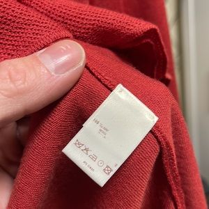 Authentic Louis Vuitton rust-reddish colored button down scoop neck cardigan. Ruffled front detail. Super soft lightweight wool. Very good condition! Selling for upwards of $500 on other sites. Length 24” pit to pit 19”.