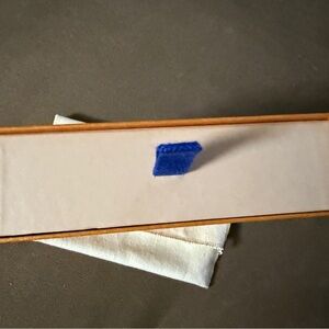 The box has a slide-out drawer design, indicated by the blue tab, making it suitable for presenting gifts like wallets or jewelry.