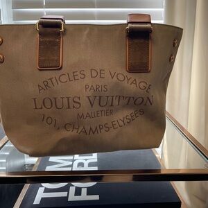 Louis Vuitton tote in very good condition. This bag I had been taken very good care of . The inside is in perfect condition with discoloration on the sides from the buttons ..