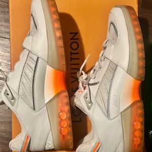 These sneakers are a rare find, especially in this colorway and size. They come with the original LV box, dust bags and extra laces