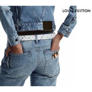 Louis Vuitton x Murakami White Multicolor Logo D-Ring Belt 90 2025 LTD RARE NEW