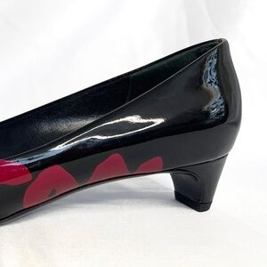 Fun and funky Louis Vuitton pumps from the limited Stephen Sprouse collection in high-gloss patent leather. With trendy and comfortable kitten heels at 1", and pointy toes, they are equally great for the office or for a fun night out. As you can see in the images, they have been worn, but other than on the soles, it is not visible. Over time,, the bright fuchsia of the graffiti did fade, but they still stand out in their uniqueness.
