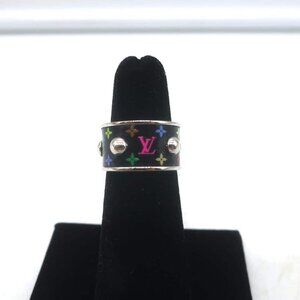 Louis Vuitton x Takashi Murakami S-Lock Ring Black Coated Canvas Size 5 NEW