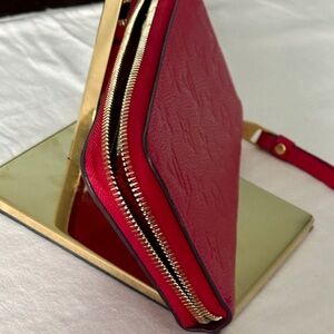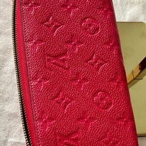 This gorgeous Louis Vuitton Monogram Empreinte Leather Zippy Wallet is the most elegant way to organize your essentials such as your bills, papers, credit cards and plenty of coins in a compact way. It features a wrap-around zip closure with either card slots, several flat slots, and a zip pocket. Made from the highest quality calfskin leather, this embossed leather is supple and durable. Perfect for sliding into your favorite LV bag! Retail price is $1120.