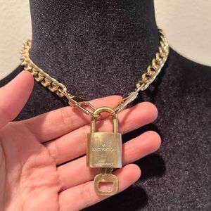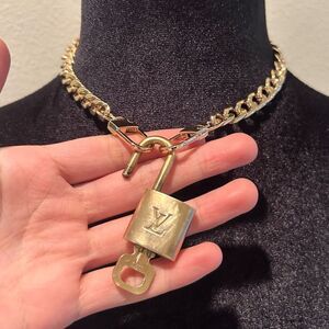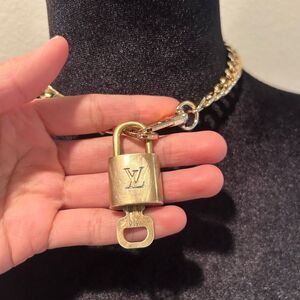 Louis Vuitton #313 Lock and Key Gold Brass with new unbranded chain