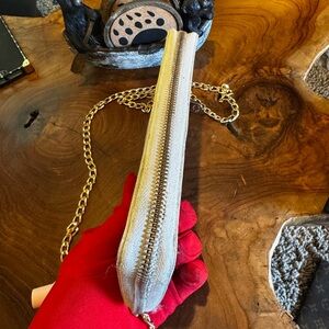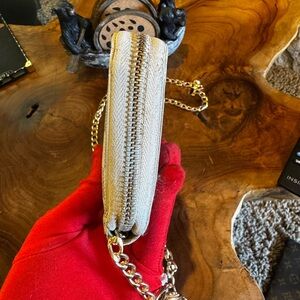 this is a vintage pre-loved loved item in great working condition. It has been cleaned and conditioned with leather cleaner/a unbranded 47 inch chain and unbranded charm added can be easily removed to use as wallet/zipper works great/trim has been touched up with Angela leather paint to improve the look/exterior normal wear does has some discolor/interior normal wear just has some marks and scratches somewhere and rubbing on corners. See pictures closely. Please ask questions. Please keep in mind when purchasing like all things with the age, they will have some bumps and bruises. Thank you.