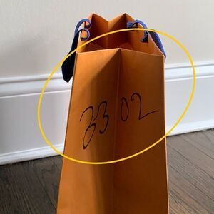 This authentic Louis Vuitton orange shopping bag makes a bold statement for gifting or display.