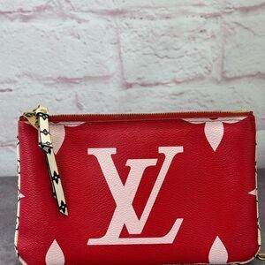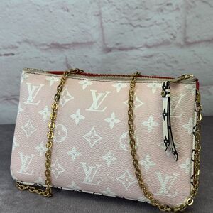 Authentic Louis Vuitton Giant Monogram Pink Red Chain Double Zip Pochette Crossbody