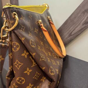 LV Monogram Pallas 2 way bag. Can be used as a handbag or shoulder bag. Removable LV strap included. This bag is in excellent condition inside and out. This is a pre-loved item so please see pictures for details.