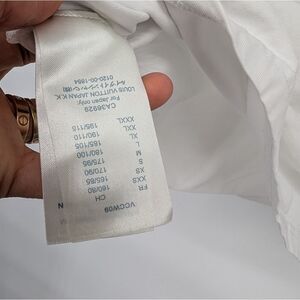 Experience the luxury of Louis Vuitton with this white short sleeve tee, featuring a retro-styled text design on the front. Crafted from premium cotton, this shirt offers both comfort and style, making it a versatile addition to any wardrobe.