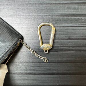 Gorgeous and functional Louis Vuitton card case in classic black Epi leather. Features a sleek silver-tone chain for added versatility—clip it to your bag or keys for easy access.