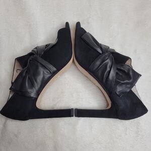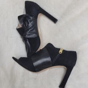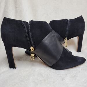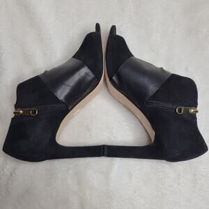 Louis et Cie Idola Suede Leather Bow Peep Toe High Heeled Gold Zip Bootie✨️8.5