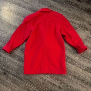 Red oversized jacket with slight shoulder pads to give it a structured fit