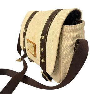 Louis Vuitton Authentic Beige Cream Canvas Antigua Buzzus PM Shoulder or Crossbody Bag w Brown Detail