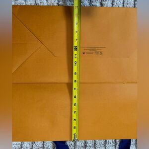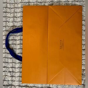 Vibrant orange tote with striking blue handles. Iconic Louis Vuitton branding.