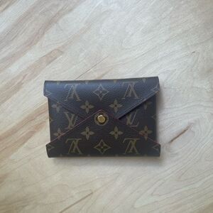 Authentic Chic Louis Vuitton Pochette with iconic monogram. Comes with a button snap closure. New, with proof of purchase. Features a vibrant cherry red interior. Dimensions 4 1/2x 6 1/4 inches.
