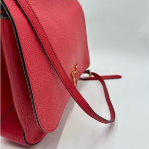 This gorgeous satchel is red from pebbled red calfskin with a slight deep pink hue. Wear it as a shoulder bag or a crossbody bag as well.