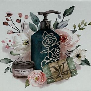 Chic canvas featuring Louis Vuitton with floral and gift motifs. Adds luxury to decor.
