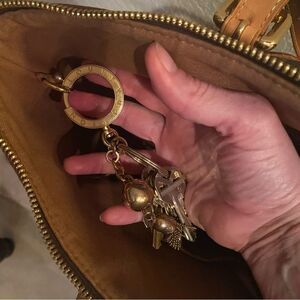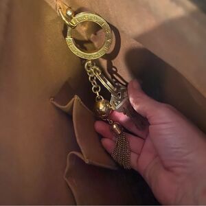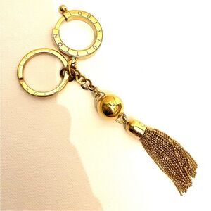 Pimp your bag and keys with this beautiful gold Louis Vuitton charm. This beautiful accessory attaches with a clip and features another ring and a flowing tassle. Clip it on your bag or attach it to your keys, either way will look great. This makes the perfect gift for a loved one or for yourself!