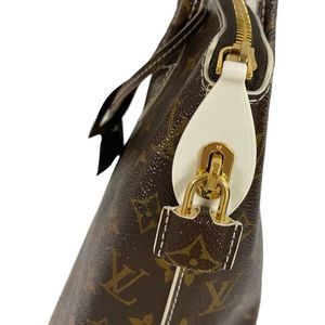 Louis Vuitton Lockit Shiny Monogram Canvas Leather Brown White Handbag