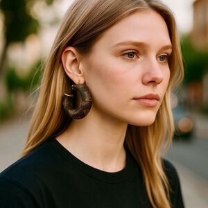 These exquisite Louis Vuitton hoop earrings showcase a luxurious blend of brown and gold tones, embodying elegance and sophistication. Crafted with a distinctive crescent shape and a textured, scale-like pattern, they offer a unique serpentine quality. The metallic finish enhances their warm, golden allure, making them a standout accessory for any occasion.