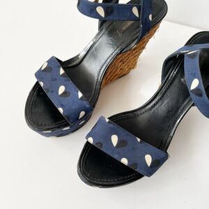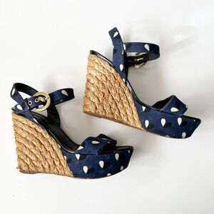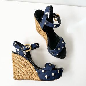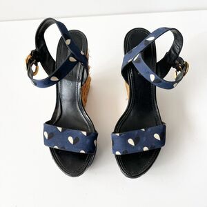 Louis Vuitton Navy Fabric Braided Espadrille Wedges Heels Sandals Size 8.5