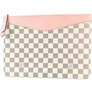 Louis Vuitton Pochette Daily Pouch Damier Azur Calf Leather White Gray Gold Tablet Case Accessory Case Clutch Bag Handbag LV