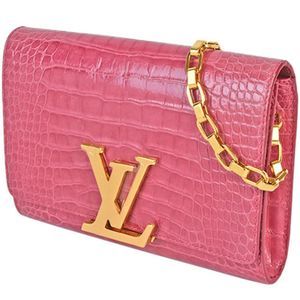 Louis Vuitton Pochette Crocodile Chain Shoulder Leather Pink