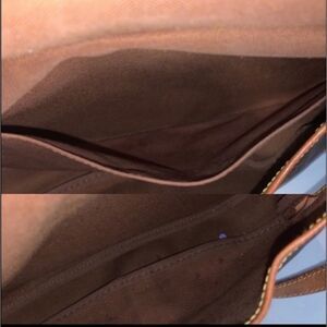 This is Part 2 of the original listing for the Saumur. It shows photos of the bag when I purchased it, it's authentication, date code and more pictures of the inside of the bag. You can see slight watermarks on the interior of the flaps. The buckle strap does not fit perfectly into its holder on one side, but it will stay closed. The canvas is in good condition and the leather is in pretty good condition with some dryness and cracking. I have used leather treatment on it since I've had the bag. The bag was made in France in March of 1990. If you purchase this listing, I am going to assume you have read and agree with Part 1, as well.