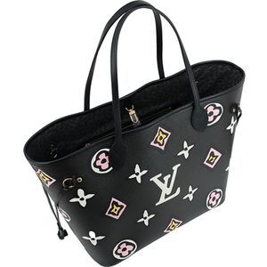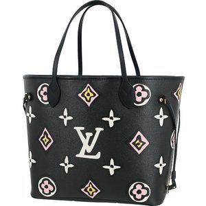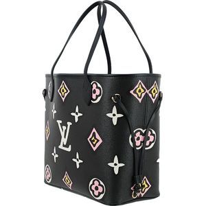 Louis Vuitton Tote Bag Neverfull MM Monogram Leather Black Multicolor