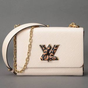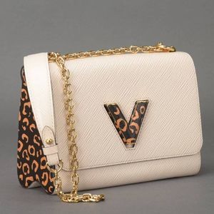 Louis Vuitton Twist MM Chain Shoulder Leopard Epi Leather White Shoulder Bag