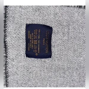 Gorgeous cashmere wool blend scarf with bold Louis Vuitton print.