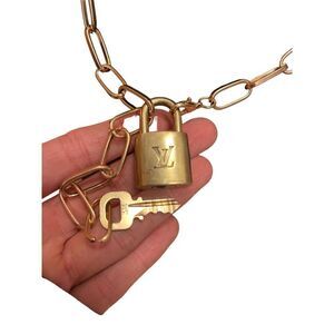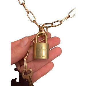 Louis Vuitton Authentic Lock on a NON BRAND gold plated Cuban 24 inch Chain .
