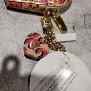 This authentic Louis Vuitton Vernis Leopard Heart Coin Purse is a perfect Valentines Day treat! It is Monogram embossed, leopard print with an adorable resin matching heart at the end of its chain. Date code is TS4180.