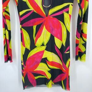 Louisa Ballou | Helios Double Layer Mesh Dress in Electric Pink Flower M