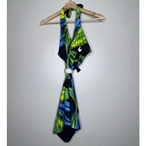 Louisa Ballou Ssense Cut Out Sex Wrap Mini Dress Blue & Yellow/Green Size Small