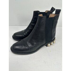 Louise Et Cie Valtina size 6.5 Black Leather Boots With Pearl Heels As Is