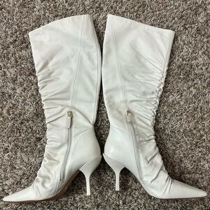 Louise Et Cie Vila Pointed Toe Pull-on Stiletto Pointed Dress Boots Sz 11 cream white color has some scuffs and scrapes shown in photos still good condition from afar super cute can dress up or down has inner zipper by ankle cinched looking from detail Always open to offers bundle and save more! Always fast shipping!