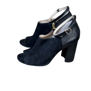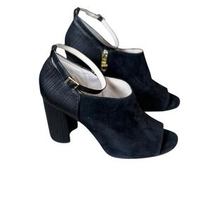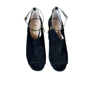 Louise Et Cie Women's Lo-Keran Open Toe Booties 9M Black Suede 4" Block Heel