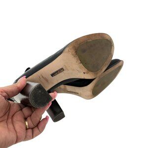 Sole shows wear and scuffs. Heel height = approx. 4 inches.