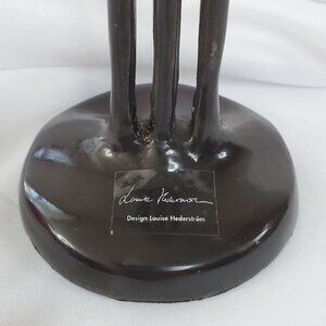 This abstract sculpture by designer Louise Hederström embodies elegance with its sleek black metal form. It's a sophisticated addition to any art collection, offering a modern and minimalist aesthetic. The sculpture's elongated figures and smooth finish make it a striking piece for display in contemporary spaces.