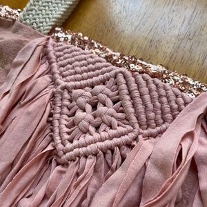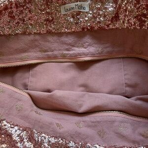 Louise Misha Pink Sequin Tote Bag Fringe Boho Chic Cotton Canvas Medium Pocket