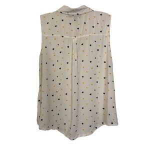 Louise Paris gold and blue hearts allover print button down sleeveless top.
