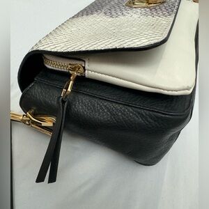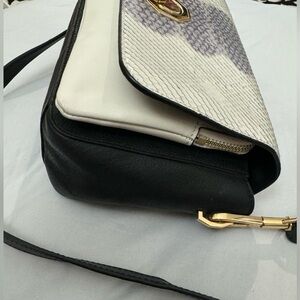 Louise et Cie Alis Leather Crossbody Snake Print White Black & Purple Purse Bag. Small wear to front bottom corner/sides of purse & wear to snake print as shown in pics. Otherwise very clean & in great condition.