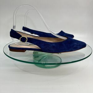 Details: A gently pointed toe defines a chic slingback flat with plenty of sophisticated go-anywhere attitude. Closed pointed toe and adjustable slingback strap with buckle closure. Gold hardware. Lightly padded footbed. Color: Notte | Royal | Blue