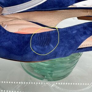 NEW CONDITION WITH FLAWS: Store Display Item. Bottom Sole has some sticker residue, imprint on suede leather, and there may be scruffs and marks on heels. This item was in a retail environment.