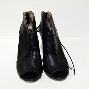 Louise et Cie Black Leather Laced Peep Toe Heeled Boots
