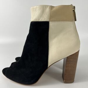 Louise et Cie Color Block Leather Ankle Boots Sz 10 Black Ivory Tan Open Toe 4”