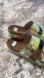Stylish sandals with a shimmering finish. Features a double buckle design.